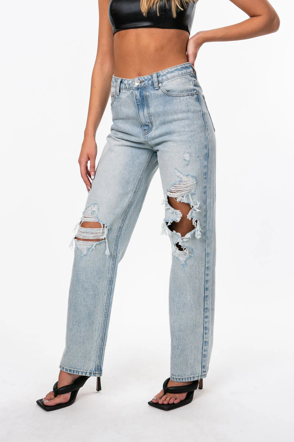 - Distressed rip detailing